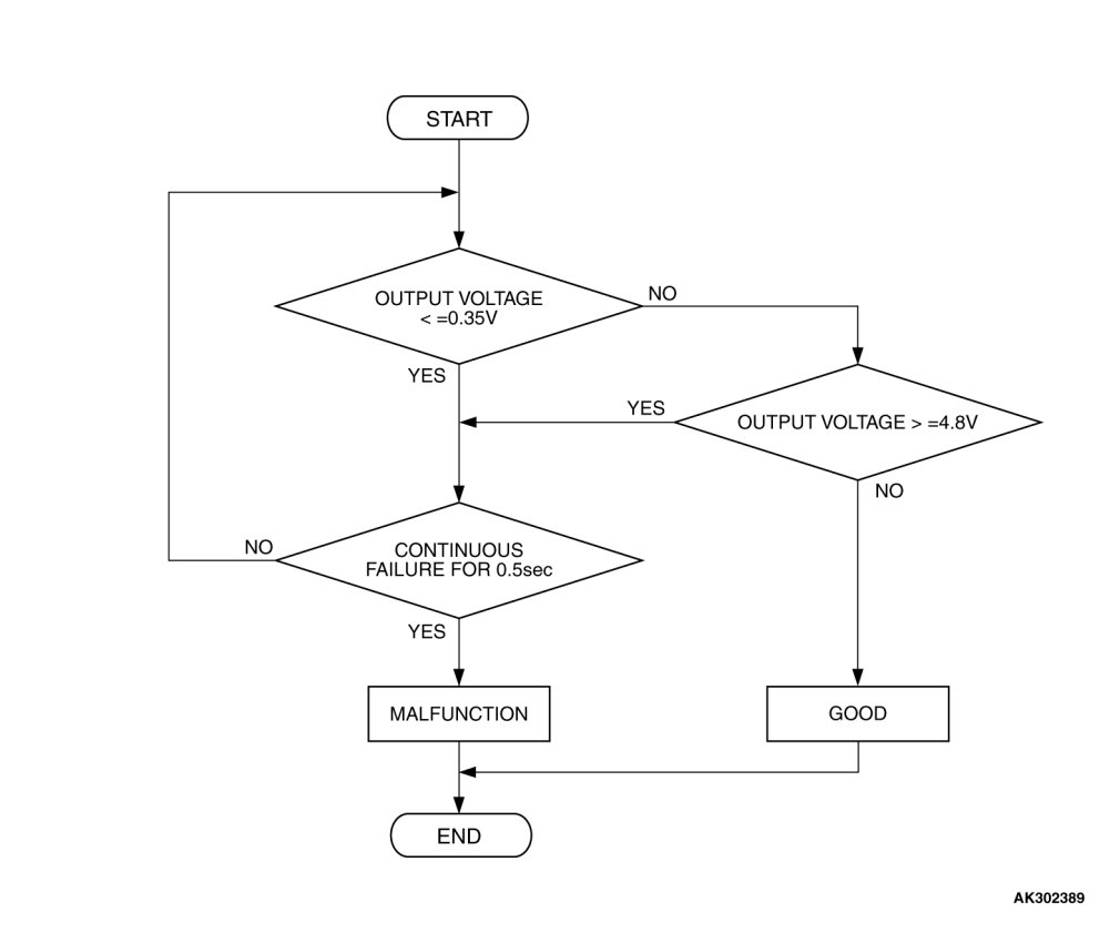 - The ECM[ M/T] or the PCM[ A/T] checks whether the voltage is within a specified range.