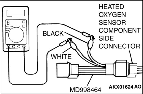 STEP 1. Using scan tool MB991958, check data list item AE: Heated Oxygen Sensor Bank 2, Sensor 1 (left front).