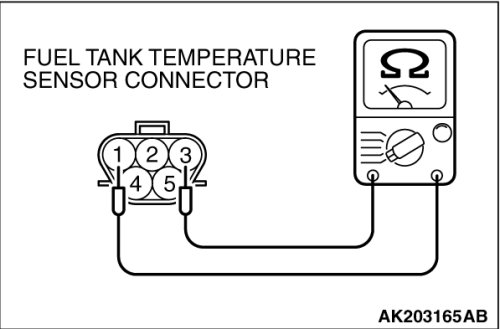 - The fuel tank temperature sensor output voltage increases when the resistance increases and decreases when the resistance decreases. The ground terminal (terminal No. 1) is grounded to the vehicle body.
