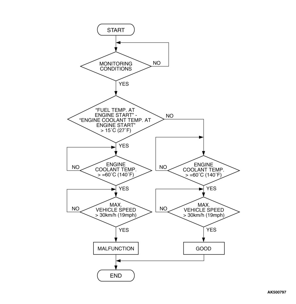 - The fuel tank temperature - engine coolant temperature is 15°C (27°F) or more when the engine is started.
