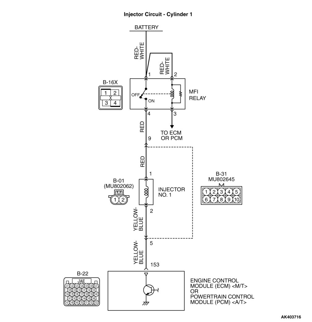 - The injector power is supplied from the MFI relay (terminal No. 4).