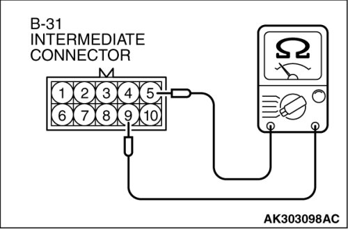 (1)Disconnect the intermediate connector B-31 and connect the test harness MB991658 between the separated connectors.