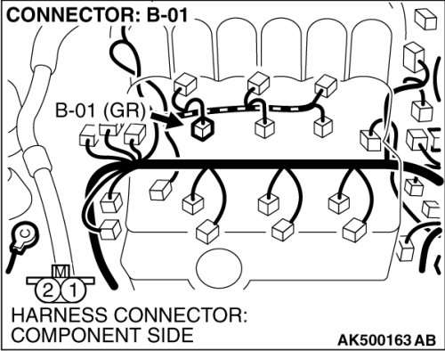 STEP 4. Check the harness connector B-01 at No. 1 cylinder injector for damage.