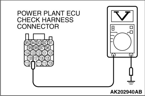 Connect the power plant ECU check harness special tool MB991923 between the separated connectors.
