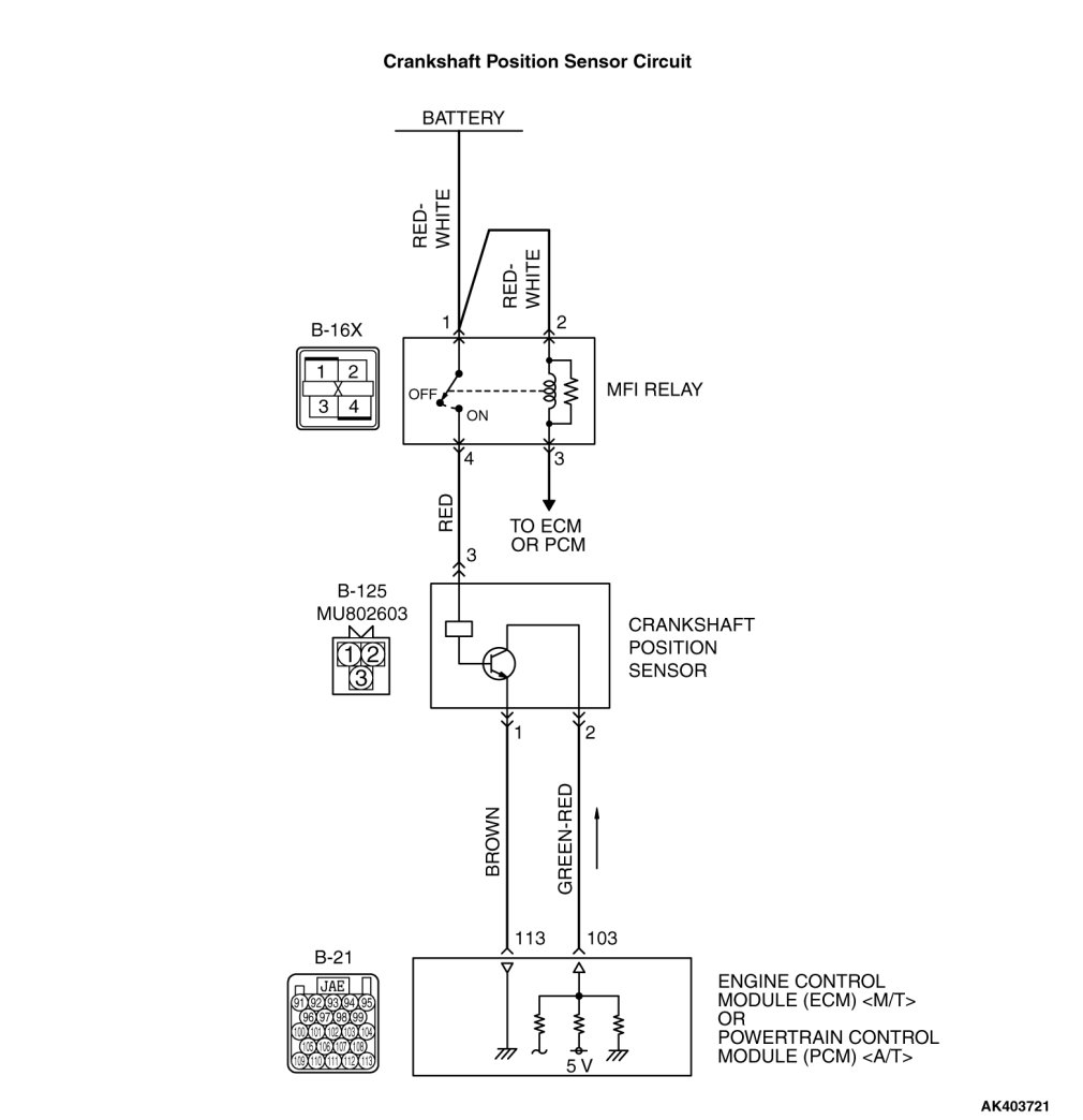 - The crankshaft position sensor power is supplied from the MFI relay (terminal No. 4).
