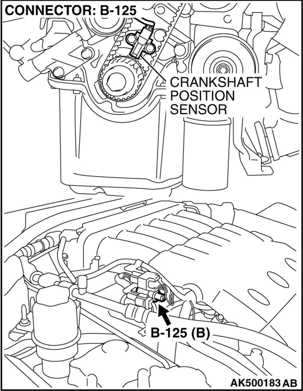 (2)Disconnect the crankshaft position sensor connector B-125.