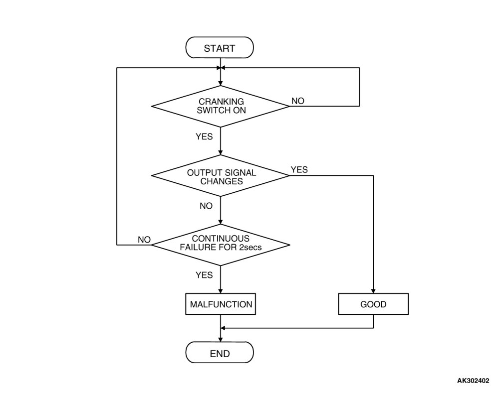 - Crankshaft position sensor output voltage has not changed (no pulse signal is input) for 2 seconds.