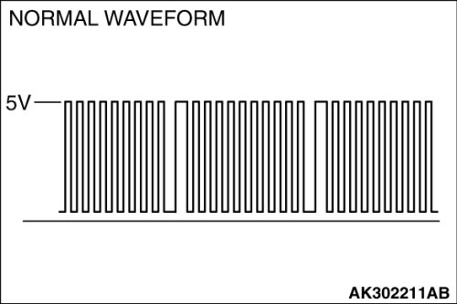 When measuring with the ECM [M/T] or the PCM [A/T] side connector, disconnect all ECM [M/T] connectors or PCM [A/T] connectors. Connect the check harness special tool (MB991923) between the separated connectors. then connector the oscilloscope probe to the check harness connector terminal No. 103.