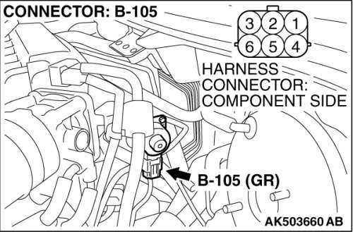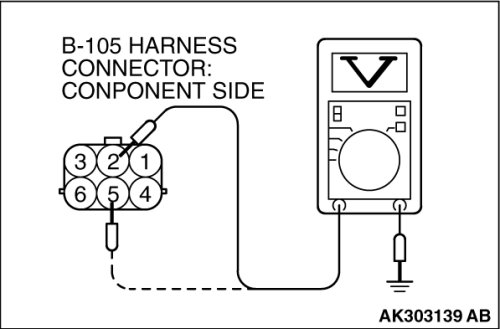 STEP 3. Measure the power supply voltage at EGR valve motor harness side connector B-105.