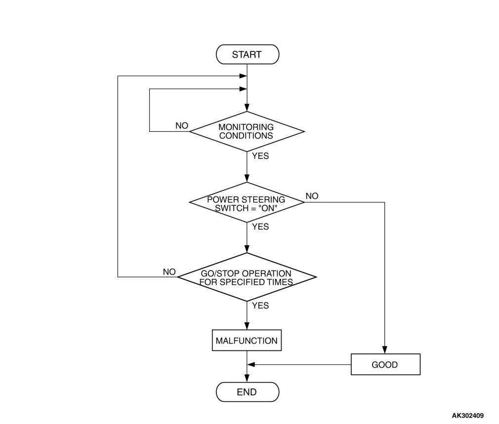 Power steering pressure switch stays on during specified go/stop operations.