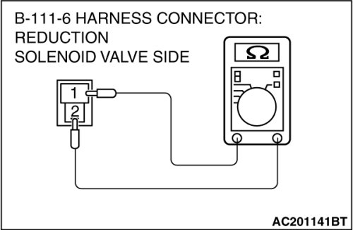 STEP 4. Measure the Reduction solenoid valve resistance at A/T control solenoid valve assembly connector B-111.