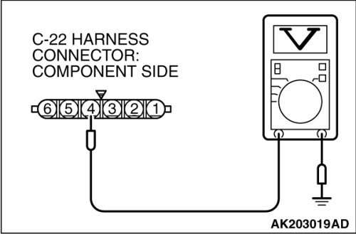 (1)Disconnect the connector C-22 and measure at the harness side.