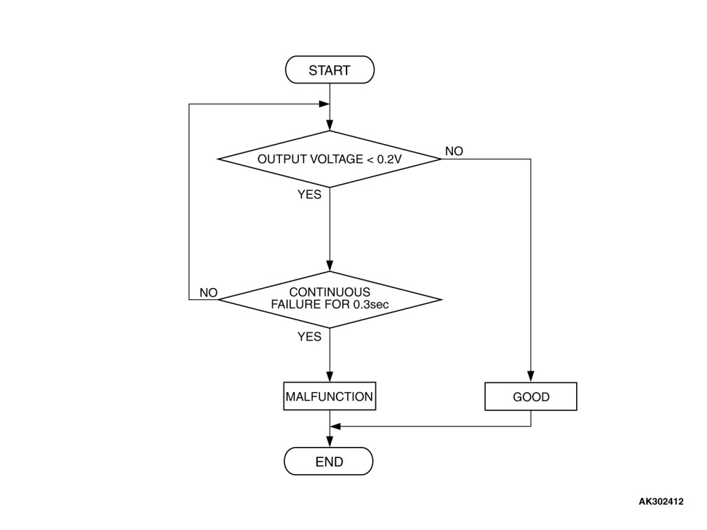 - Accelerator pedal position sensor (sub) output voltage is 0.2 volt or less for 0.3 second.
