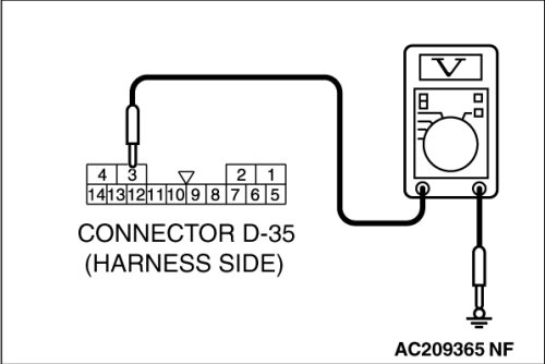 (1)Disconnect sunroof motor assembly connector D-35 and measure the voltage available at the wiring harness side of the connector.