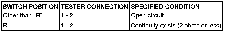 Disconnect backup light switch connector B-114. Then check continuity between the switch terminals.