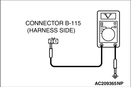 (1)Disconnect backup light switch connector B-114 and measure the voltage available at the wiring harness side of the connector.