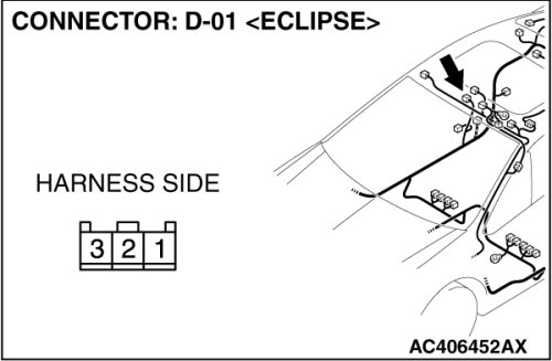 STEP 11. Check the wiring harness between door switch (RH) connector D-01 (terminal 2) and ETACS-ECU connector C-218 (terminal 65).