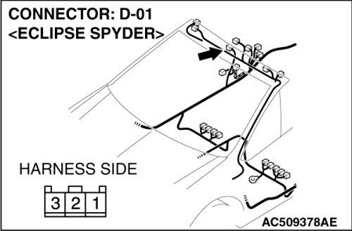 STEP 7. Check door switch (RH) connector D-01 for loose, corroded or damaged terminals, or terminals pushed back in the connector.