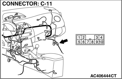 Also check intermediate connector C-11 for loose, corroded, or damaged terminals, or terminals pushed back in the connector. If intermediate connector C-11 is damaged, repair or replace the connector as described in Harness Connector Inspection Harness Connector Inspection.