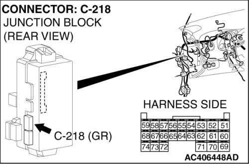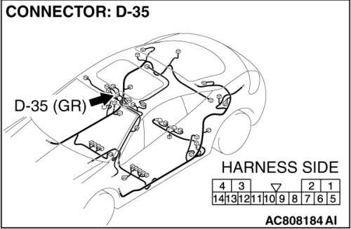 STEP 2. Check sunroof motor assembly connector D-35 and ETACS-ECU connector C-218 for loose, corroded or damaged terminals, or terminals pushed back in the connector.