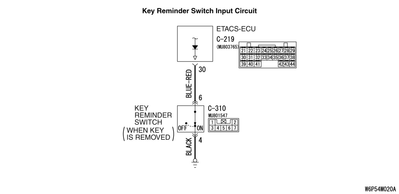 STEP 6. Check the wiring harness between key reminder switch connector C-310 (terminal 6) and ETACS-ECU connector C-219 (terminal 30).