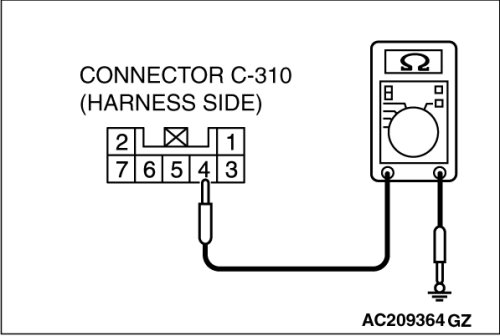 STEP 4. Check the wiring harness between key reminder switch connector C-310 (terminal 4) and ground.