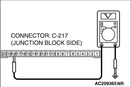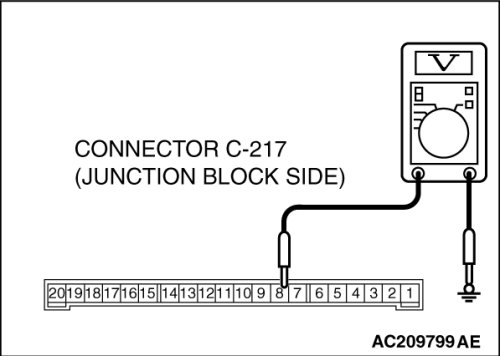 (1)Disconnect ETACS-ECU connector C-217 and measure the voltage available at the junction block side of the connector.