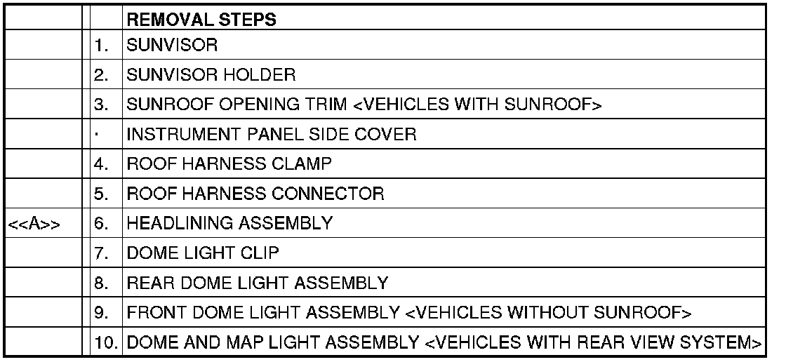 [[A]] HEADLINING ASSEMBLY REMOVAL