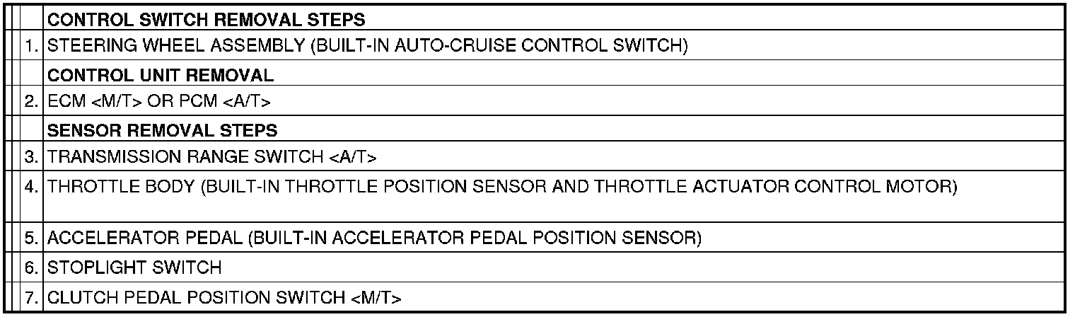 - Do not replace the ECM[ M/T] or PCM[ A/T] and the ETACS-ECU simultaneously. Always replace either one of the ECUs first, and register the encrypted code Encrypted Code Registration Criteria Table ). Then, replace the other ECU.