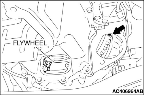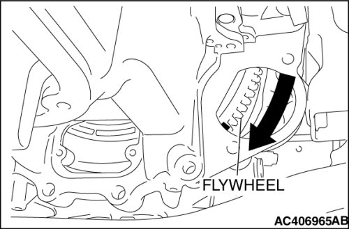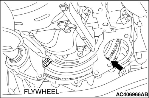 3. Check that the recessed area in the flywheel and the mark is positioned as shown.