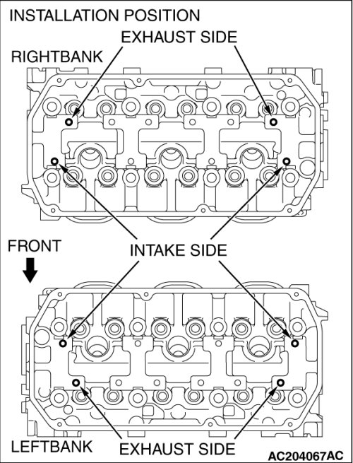 Installation position of valve spring compressor special tool (MD998772) is different between exhaust side and intake side.