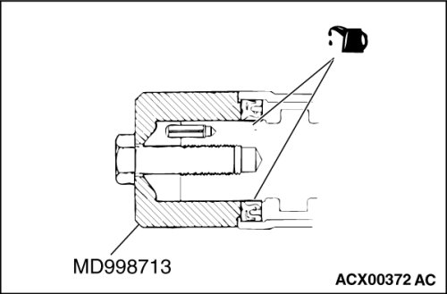 2. Use special tool MD998713 to press-fit the camshaft oil seal.