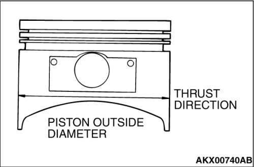 2. Measure the outside diameter of the piston to be used. Measure it in the thrust direction as shown.