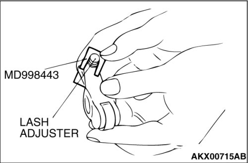 Set special tool MD998443 to prevent the lash adjuster from coming free and falling to the floor.