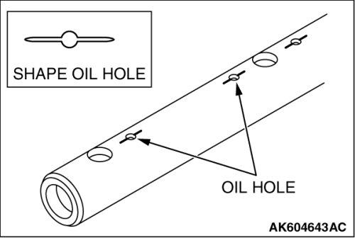 1. Place each rocker arm shaft with the side having the oil holes of the illustrated shape facing down (toward the cylinder head).