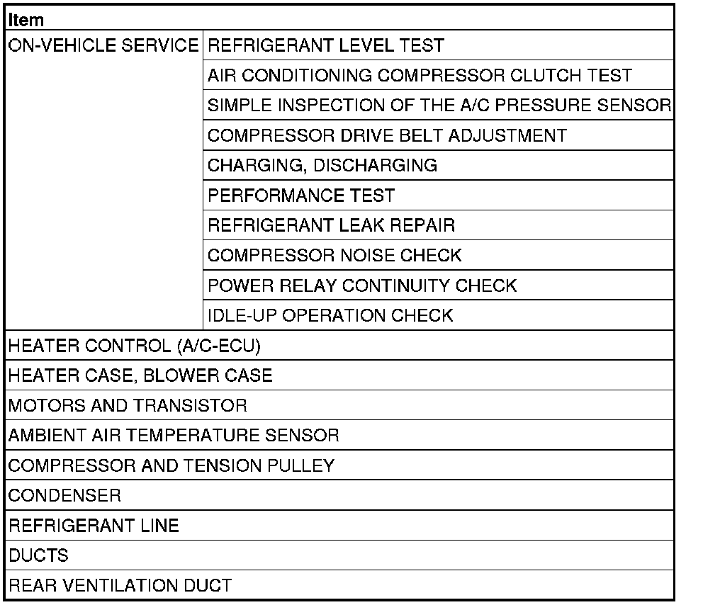 The following maintenance service points are the same as for the manual A/C.