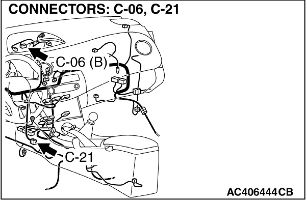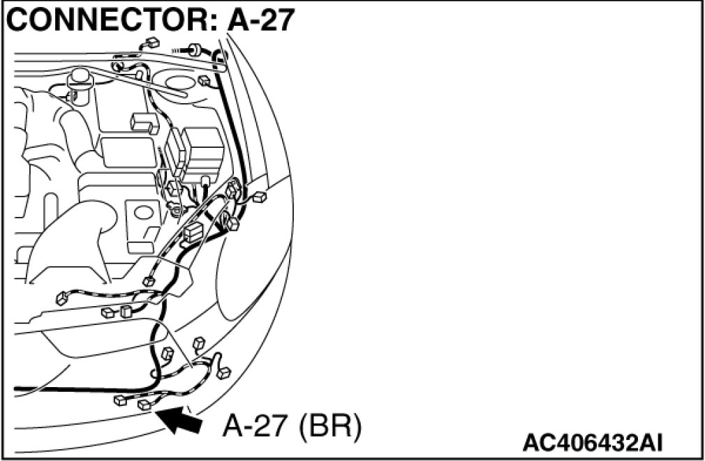STEP 1. Check the ambient air temperature sensor connector A-27 and multi-center display unit connector C-06 for damage.