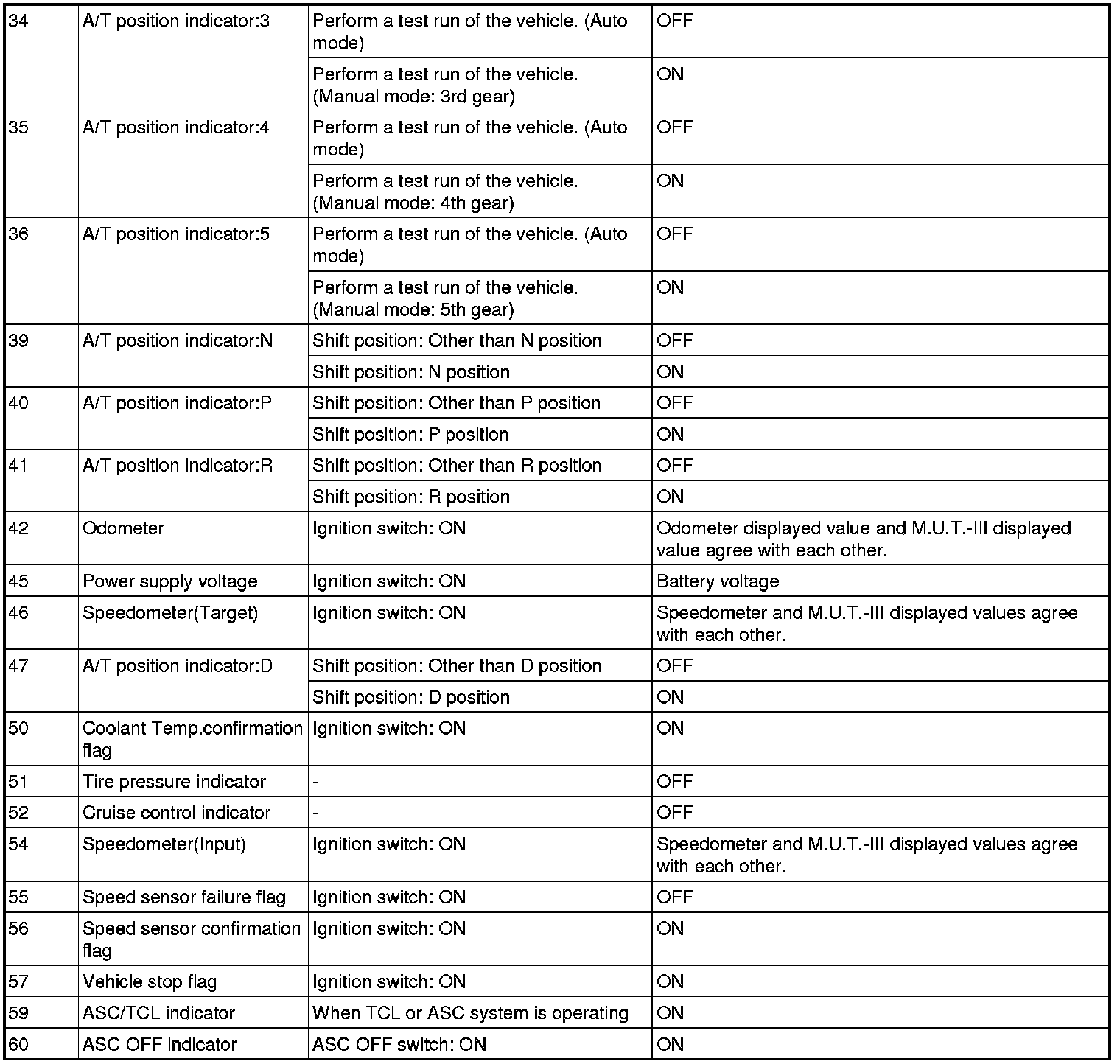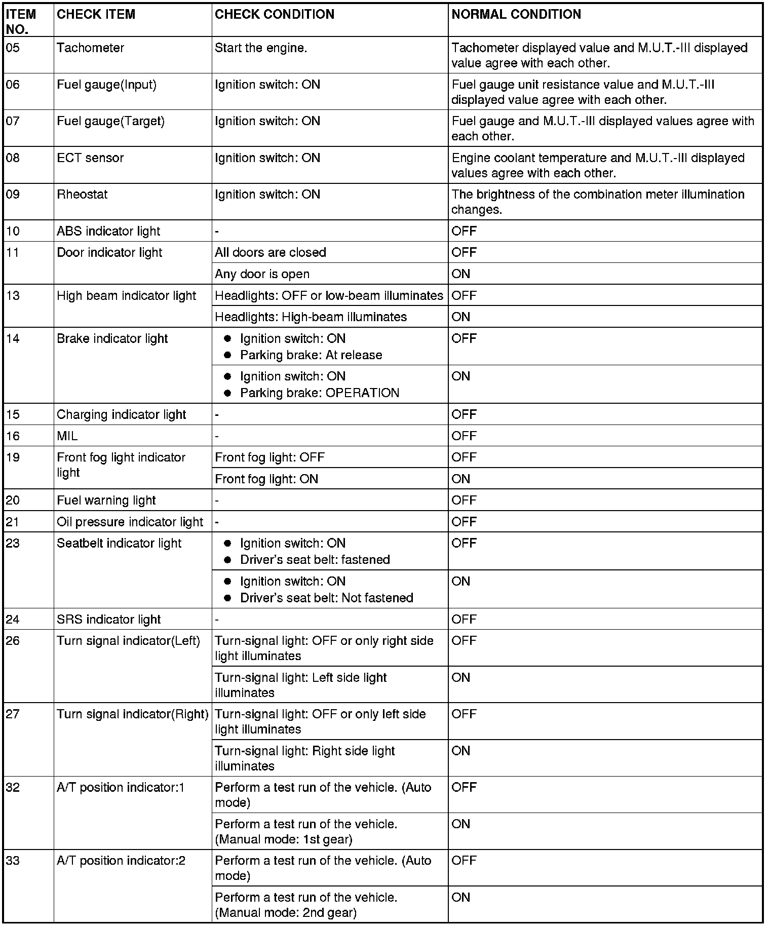 The following items of the ECU input data can be read using scan tool M.U.T.-III.