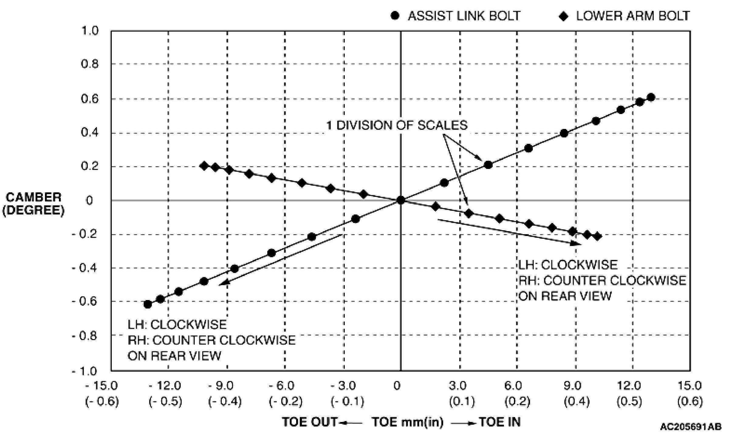 Toe-in (Standard value): 3 ± 3 mm (0.12 ± 0.12 inch)