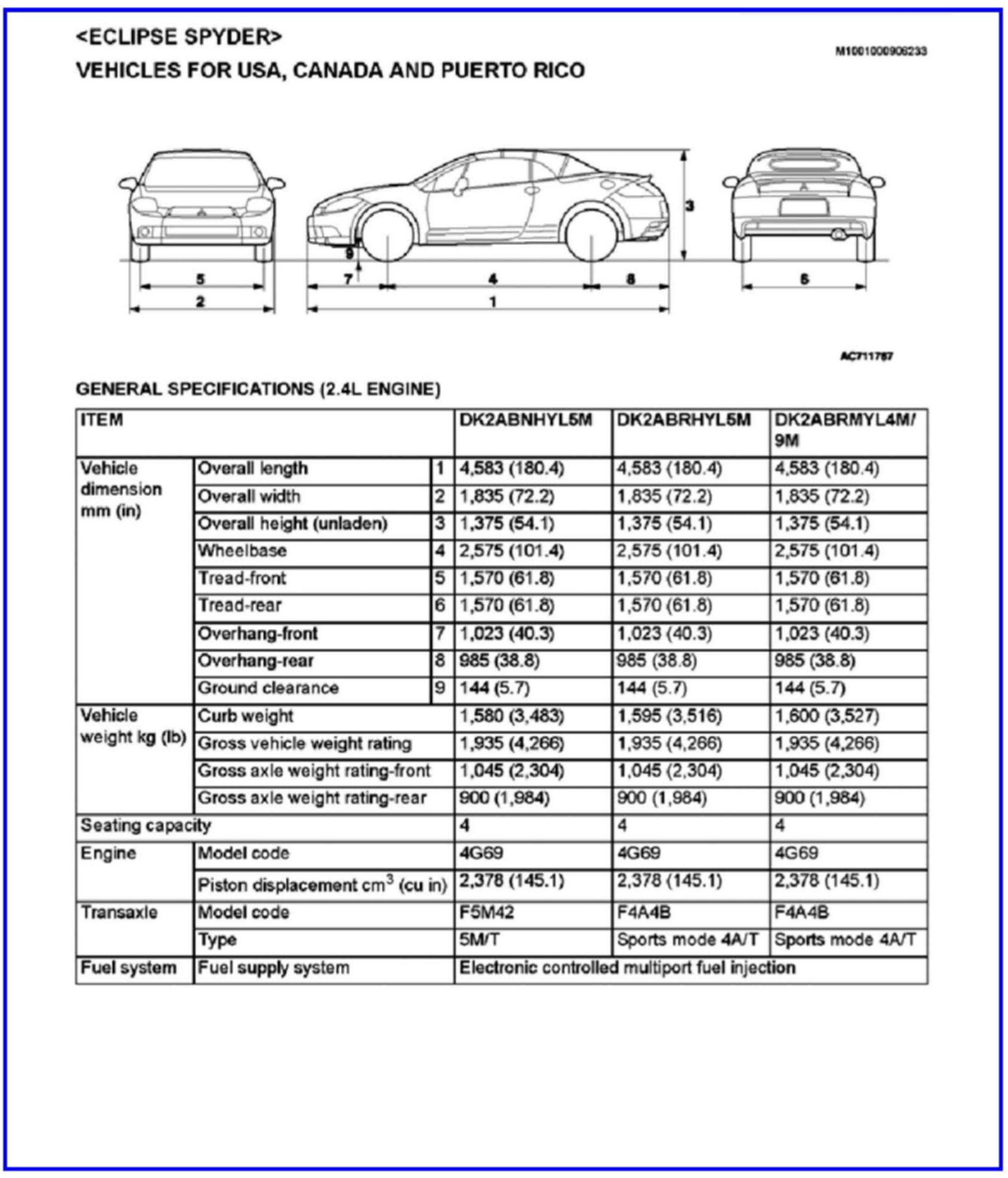 This TSB contains new service information specific to 2012 models and supplements the 2011 Eclipse/Eclipse Spyder Service Manual to provide complete repair information for 2012 models.