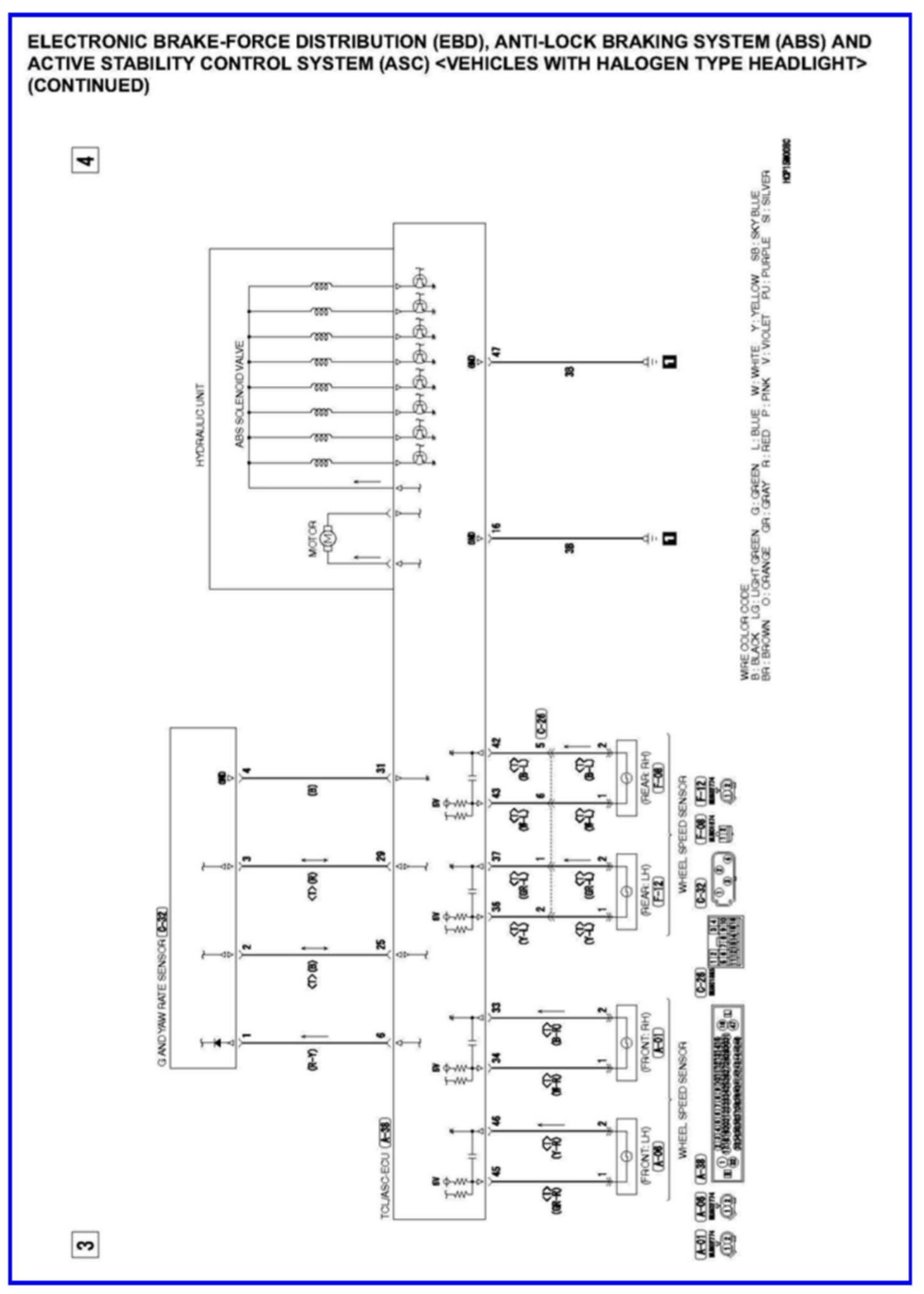^ Group 90 - Circuit Diagrams: Changed to Traction Control/Active Stability Control System diagrams due to change in G and Yaw Rate Sensor connector.
