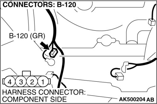 STEP 3. Check for open circuit and short circuit to ground and harness damage between generator connector B-120 (terminal No. 1) and ECM [M/T] or PCM [A/T] connector B-22 (terminal No. 132).