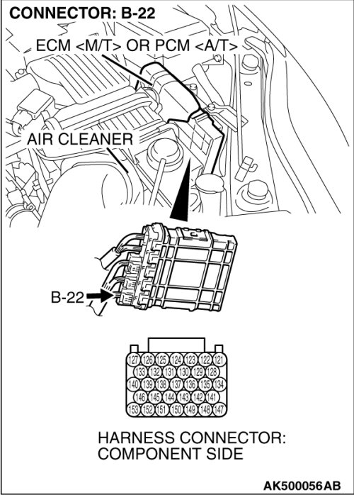 STEP 1. Measure the voltage at PCM connector B-22 by using check harness special tool MB991923.