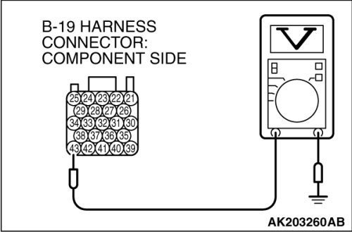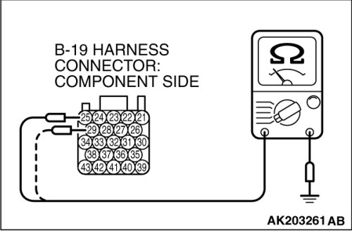 (1)Disconnect the connector B-19 and measure at the harness side.