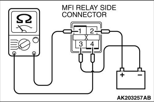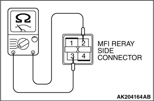 (2)Check for continuity between the MFI relay terminals No. 2 and No. 3.