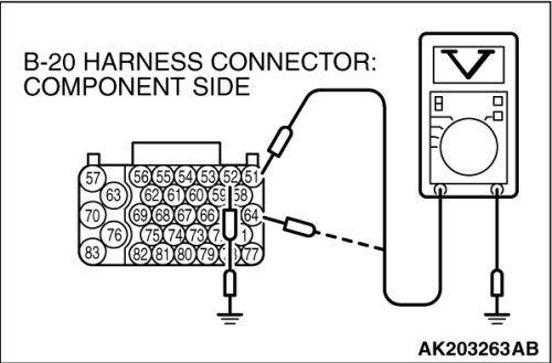 (1)Disconnect the connector B-20 and measure at the harness side.