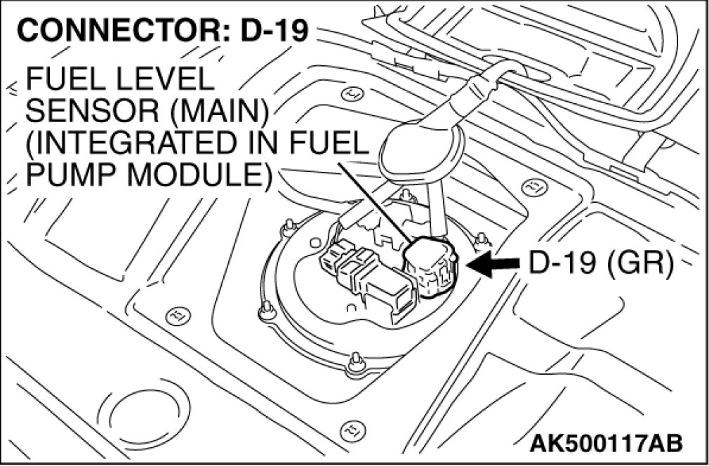 STEP 9. Check connector D-19 at fuel pump for damage.