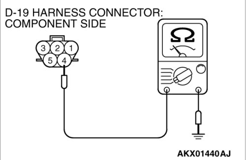 (1)Disconnect the connector D-19 and measure at the harness side.