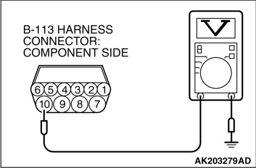 (1)Disconnect the connector B-113 and measure at the harness side.