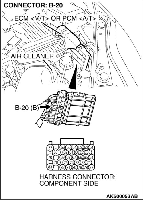 - If the selector lever is moved to "P" or "N" range and the ignition switch is turned to "START" position, battery positive voltage is supplied to PCM (terminal No. 83) through the ignition switch and transmission range switch. Because of this, the PCM detects that the engine is cranking.